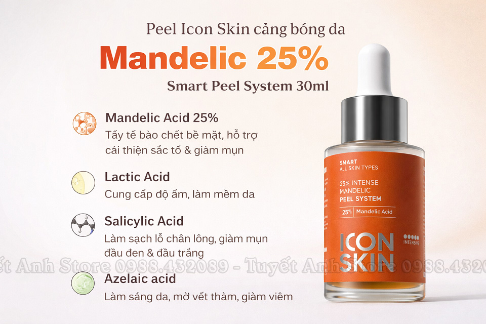 PEEL CĂNG BÓNG TRẮNG SÁNG DA ICON SKIN 25% Intense Mandelic Peel System - Chai 30ml - Sản phẩm Liên Bang Nga - Mã vạch: 3713760812222