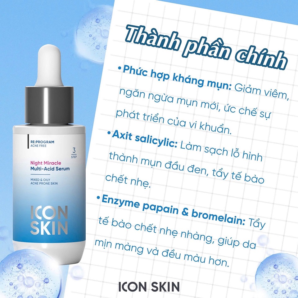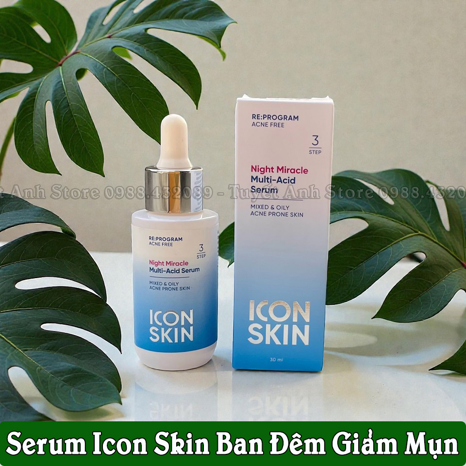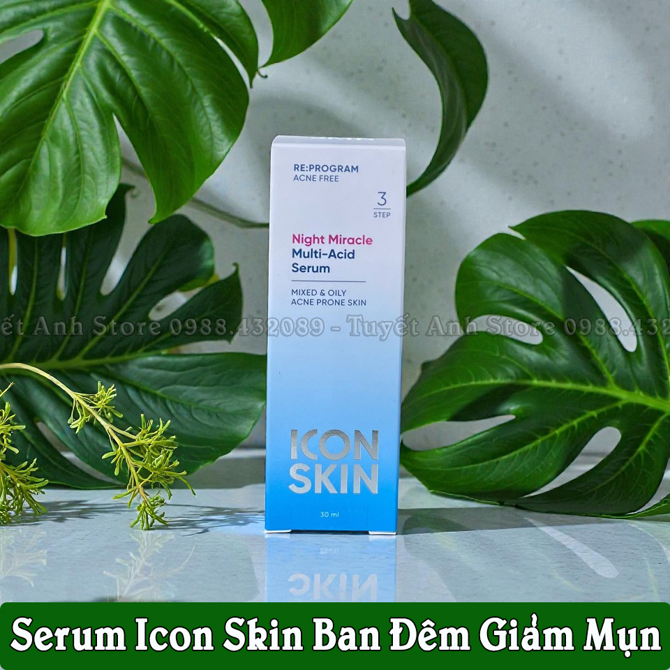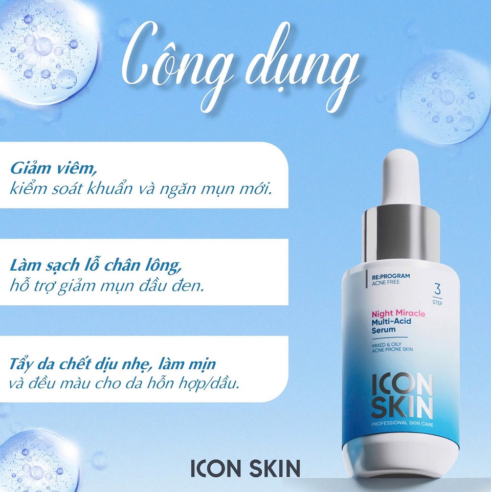 SERUM BAN ĐÊM ICON SKIN GIẢM MỤN MỜ THÂMNight Miracle Multi - Acid Serum Step 3- Chai 30ml