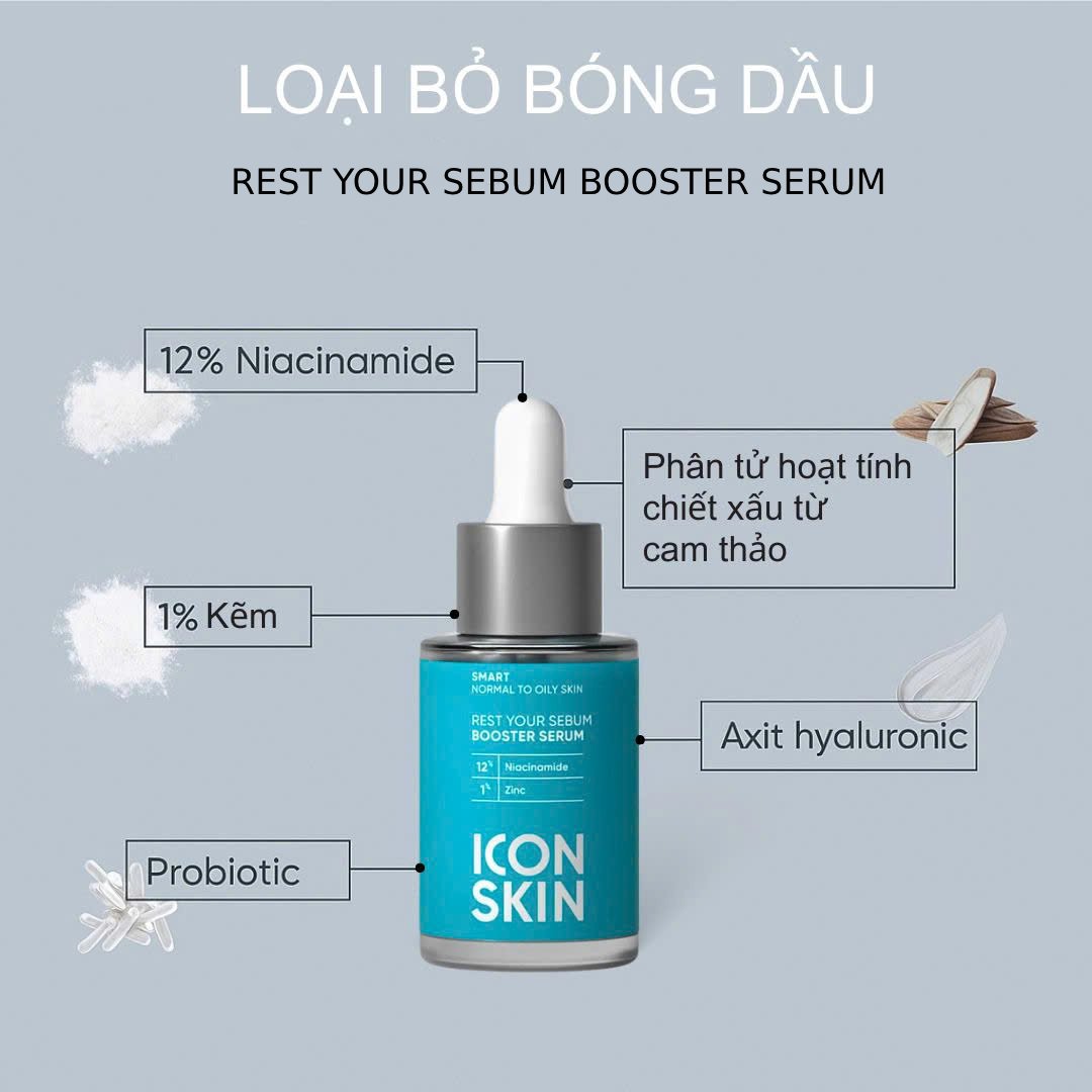 ICON SKIN REST YOUR SEBUM BOOSTER SERUM Serum Icon Skin Cân Bằng Da Dầu Nhờn - Chai 30ml - Xuất xứ: Nga - Mã vạch: 3713760812574 Giá Niêm Yết: 920.000 đồng/Chai