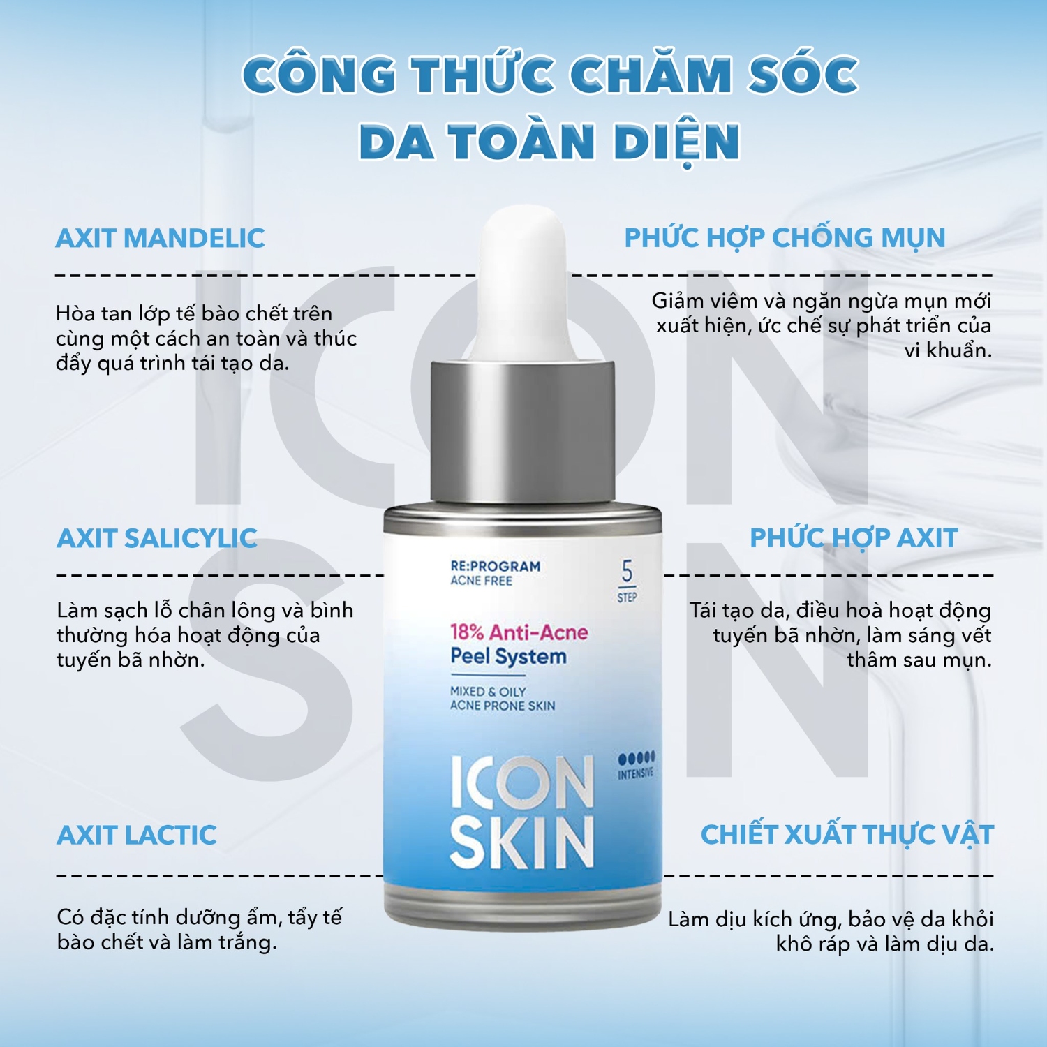 DA ĐẸP KHÔNG CẦN PEEL BONG Công nghệ peel thế hệ mới của Icon Skin – tái tạo làn da từ bên trong, phục hồi cân bằng tự nhiên, mang lại hiệu quả sáng mịn lâu dài mà vẫn an toàn tuyệt đối. ----------------------------------------------------------- Iconskin - Nhãn hiệu dược mỹ phẩm hàng đầu đến từ Nga TUYẾT ANH STORE Chuyên Mỹ Phẩm Điều Trị Chính Hãng Các Nước Luôn tuyển sỉ & Đại Lý với mức chiết khấu tốt 0988 432 089