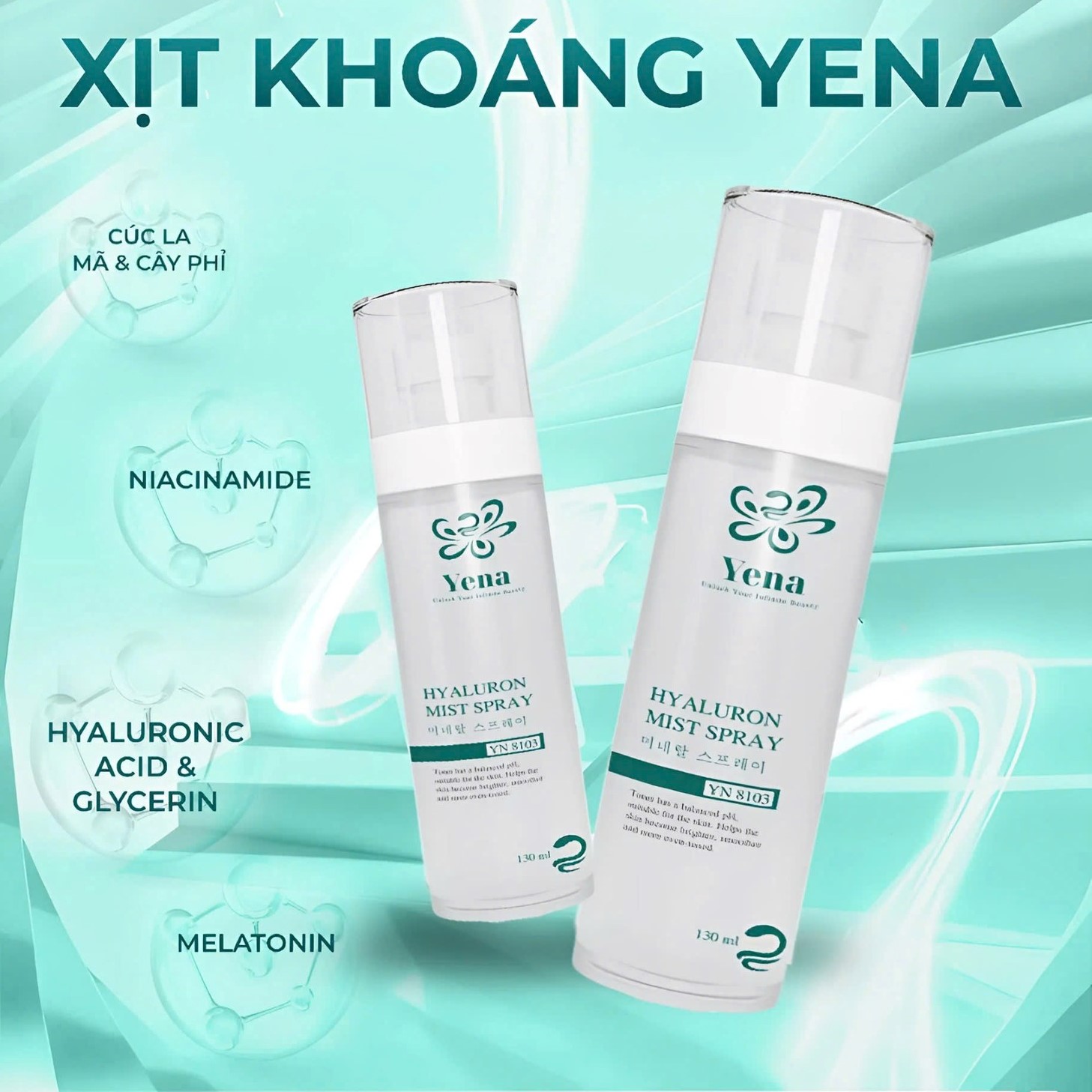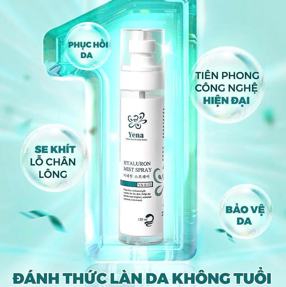 XỊT KHOÁNG YENA – HYALURON MIST SPRAY - Chai 120ml - Xuất xứ: Yena Công Nghệ Hàn Quốc - Mã vạch: 8938553919093 Giá niêm yết: 290.000 đồng/Chai